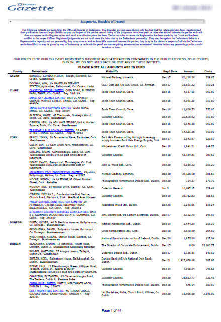 Keeping up to date with the businesses you deal with is essential in today’s market. Your customers’ circumstances can change without warning. With a high cost on corporate misrepresentation for Irish businesses each year, there’s never been a more urgent time to ensure you’re always aware of changes in your customer’s business activities and financial status.The All Ireland Gazette from Experian is an early-warning system that gives you better control over your accounts and your credit terms, helping you make the safest business decisions.